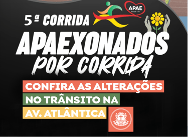 Os motoristas que circulam pela Avenida Atlântica precisam redobrar a atenção neste domingo dia sete. A cidade vai receber a quinta edição da Corrida e Caminhada APAExonados por Corrida evento organizado pela Apae Macaé que promete movimentar a orla com esporte superação e solidariedade. A largada está marcada para as sete da manhã bem em frente à Associação Atlética Banco do Brasil AABB.